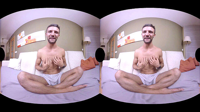 Un homme seul se déhanche dans le salon pour une expérience de strip-tease gay.